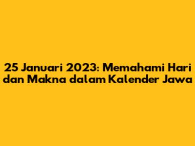 Hai, guys! Kalian penasaran tanggal 25 Januari 2023 itu hari apa dalam kalender Jawa? Nah, artikel ini bakal kasih tahu semuanya, lengkap dengan informasi wetonnya, neptu, dan sedikit bocoran tentang makna di baliknya. Jadi, siap-siap buat belajar tentang budaya Jawa yang keren ini, ya!