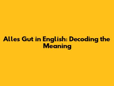Alles Gut? What Does 'Alles Gut' Mean In English?