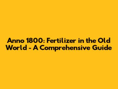Anno 1800: Fertilizer In The Old World - A Comprehensive Guide