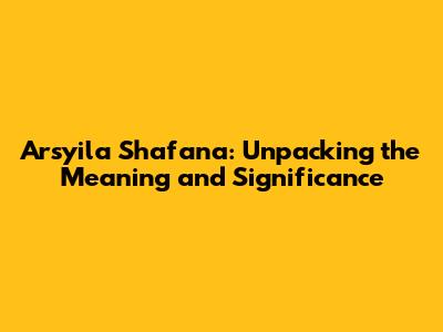 Arsyila Shafana: Meaning & Significance