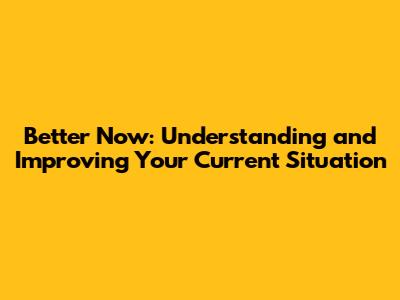 Better Now: Understanding And Improving Your Current Situation