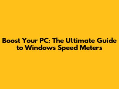 Boost Your PC: The Ultimate Guide To Windows Speed Meters