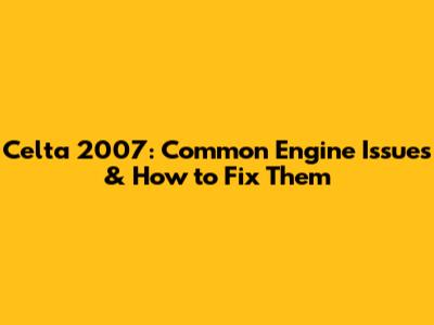 Celta 2007: Common Engine Issues & How To Fix Them