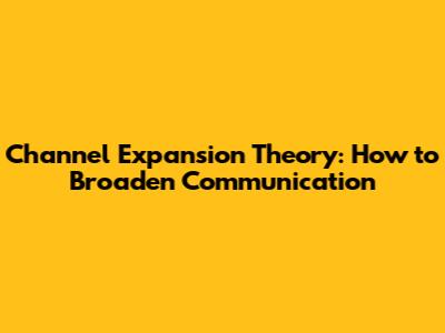By following these tips, you can leverage Channel Expansion Theory to improve your communication skills, build stronger relationships, and succeed in today's ever-changing world.