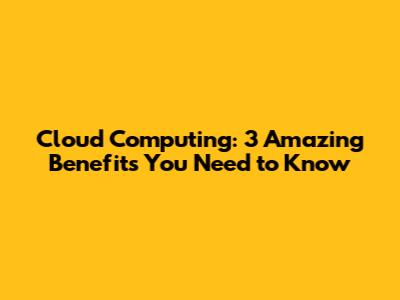 Cloud Computing: 3 Amazing Benefits You Need To Know
