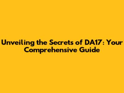 Unveiling the Secrets of DA17: Your Comprehensive Guide
