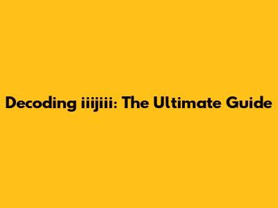 Decoding Iiijiii: The Ultimate Guide