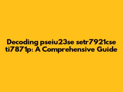 Decoding Pseiu23se Setr7921cse Ti7871p: A Comprehensive Guide