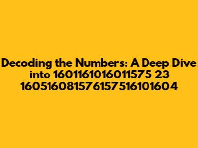 Decoding The Numbers: A Deep Dive Into 1601161016011575 23 160516081576157516101604