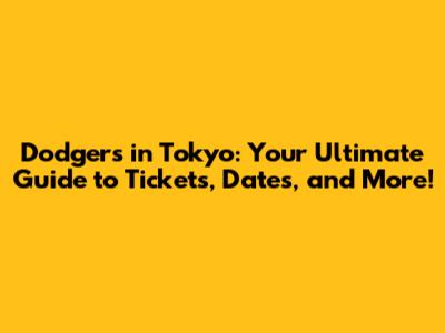 Dodgers In Tokyo: Tickets, Dates, And More!