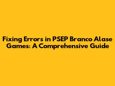 Fixing Errors In PSEP Branco Alase Games: A Comprehensive Guide