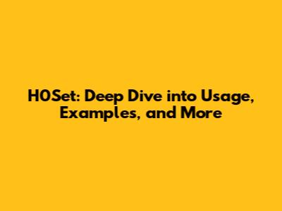 H0Set: Deep Dive Into Usage, Examples, And More