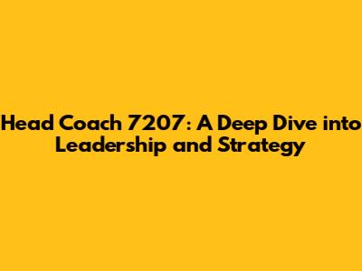 Head Coach 7207: Unveiling The Strategies For Success