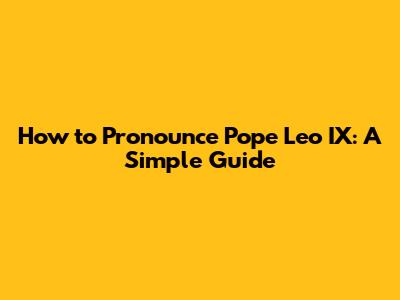 How To Pronounce Pope Leo IX: A Simple Guide