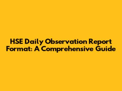 HSE Daily Observation Report Template: A Comprehensive Guide