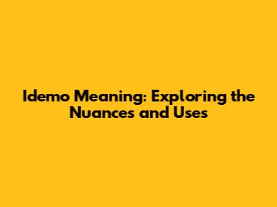 Idemo Meaning: Exploring The Nuances And Uses