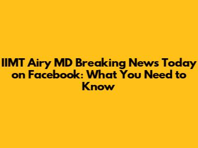 Your Ultimate Guide to Finding IIMT Airy MD Breaking News on Facebook