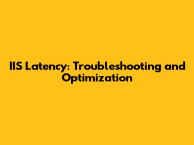 IIS Latency: Troubleshooting And Optimization