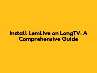 Install LemLive On LongTV: A Comprehensive Guide