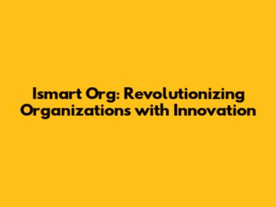 Ismart Org: Revolutionizing Organizations With Innovation