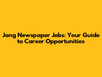 Jang Newspaper Jobs: Your Guide To Career Opportunities