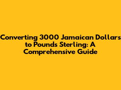 Hey there, finance enthusiasts! Ever wondered how much your hard-earned Jamaican dollars (JMD) are worth in the land of tea and crumpets, the United Kingdom? Well, you're in the right place! We're diving deep into the world of currency conversion, specifically focusing on how to convert 3000 Jamaican dollars to the ever-valuable British pound sterling (GBP). Whether you're planning a trip, managing international finances, or just curious about exchange rates, this guide is packed with all the info you need. We'll cover the basics of currency conversion, explore the current exchange rates, walk you through the conversion process, and even throw in some handy tips to help you get the most out of your money. So, buckle up, grab a cup of coffee, and let's get started on this exciting journey of JMD to GBP conversion!
