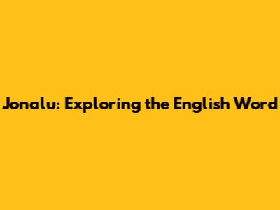 Jonalu: Unveiling The Meaning And Usage