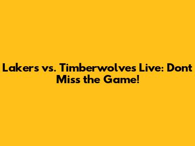 Lakers Vs. Timberwolves Live: Don't Miss The Game!