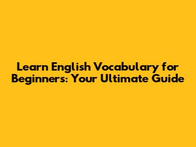 Learn English Vocabulary For Beginners