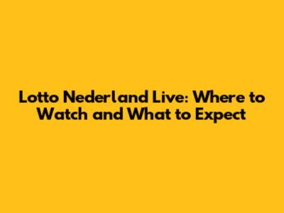 Lotto Nederland Live: Where To Watch And What To Expect