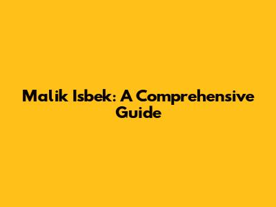 Malik Isbek: A Comprehensive Guide