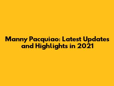 Manny Pacquiao: Latest Updates And Highlights In 2021
