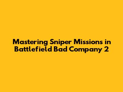 Mastering Sniper Missions In Battlefield Bad Company 2