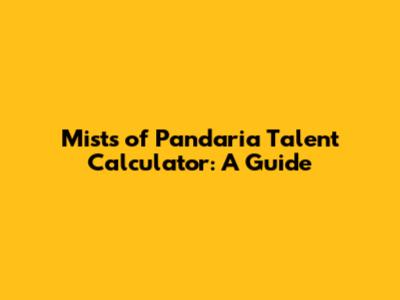 Mists Of Pandaria Talent Calculator: A Guide