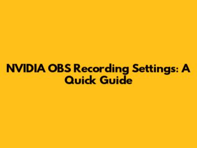 NVIDIA OBS Recording Settings: A Quick Guide