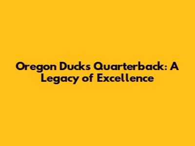 Oregon Ducks Quarterback: A Legacy Of Excellence
