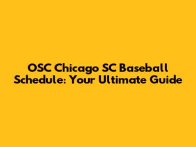 OSC Chicago SC: Check The Latest Baseball Schedule!
