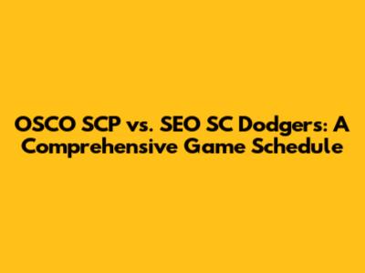 OSCO SCP Vs. SEO SC Dodgers Schedule: Your Ultimate Guide