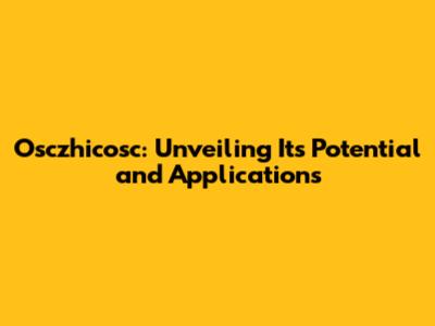 Osczhicosc: Unveiling Its Potential And Applications