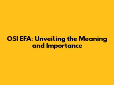 Why is Understanding OSI EFA Important?