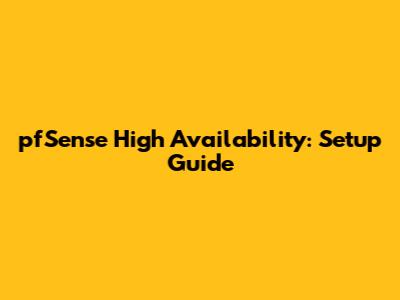 PfSense High Availability: Setup Guide