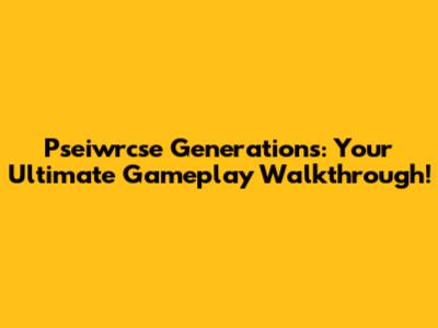 Pseiwrcse Generations: Gameplay Walkthrough Guide