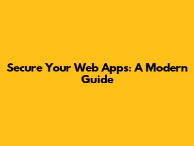 Secure Your Web Apps: A Modern Guide