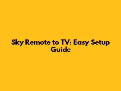 Sky Remote To TV: Easy Setup Guide