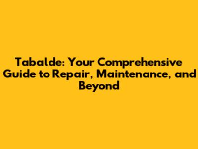 Tabalde: Your Guide To Repair, Maintenance, And Beyond