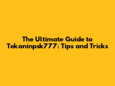 The Ultimate Guide To Tekaninpsk777: Tips And Tricks