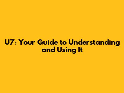 U7: Your Guide To Understanding And Using It
