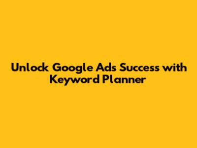 Unlock Google Ads Success With Keyword Planner