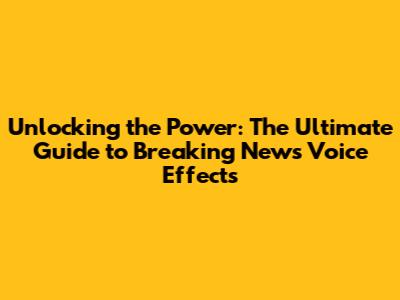 Unlocking The Power: The Ultimate Guide To Breaking News Voice Effects