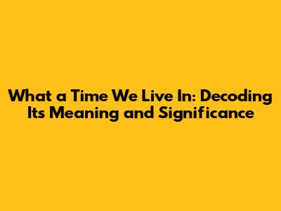 Unpacking 'What A Time We Live In': Exploring Its Meaning And Impact